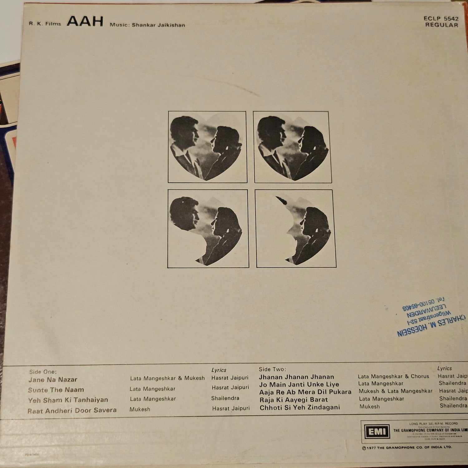 6 Superhit classic LPs package - Original soundtrack in excellent condition 1.Aah 2. Barsaat 3.Awara 4. Madhumati 5.Anarkali 6.Albela