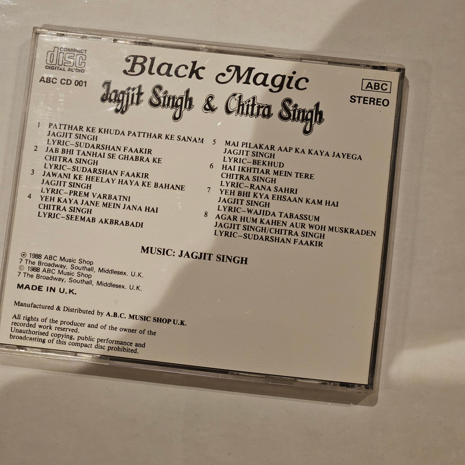 Jagjit & Chitra Singh – Black Magic Audio CD ABC CD 001 - Made in UK