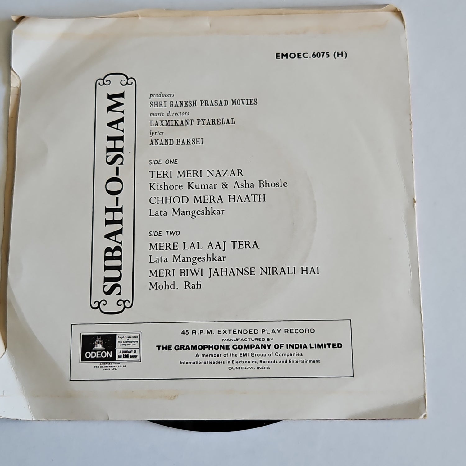Subah-o-Sham LEP - laxmikant pyarelal in VG+
