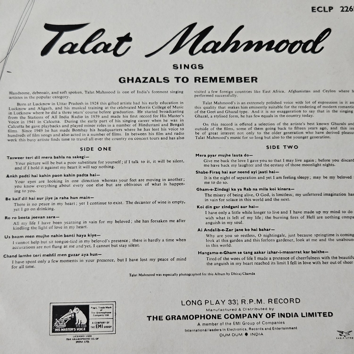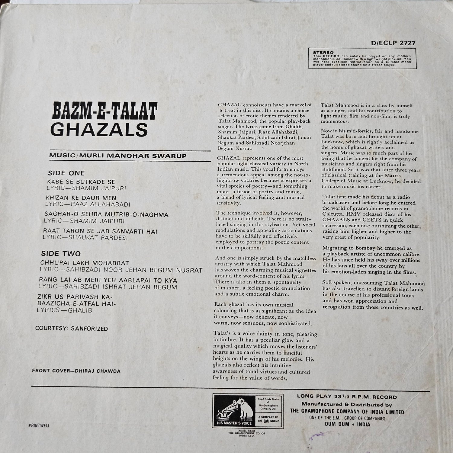 Talat Mahmood 3 records - Great collection of Ghazals albums in near mint condition