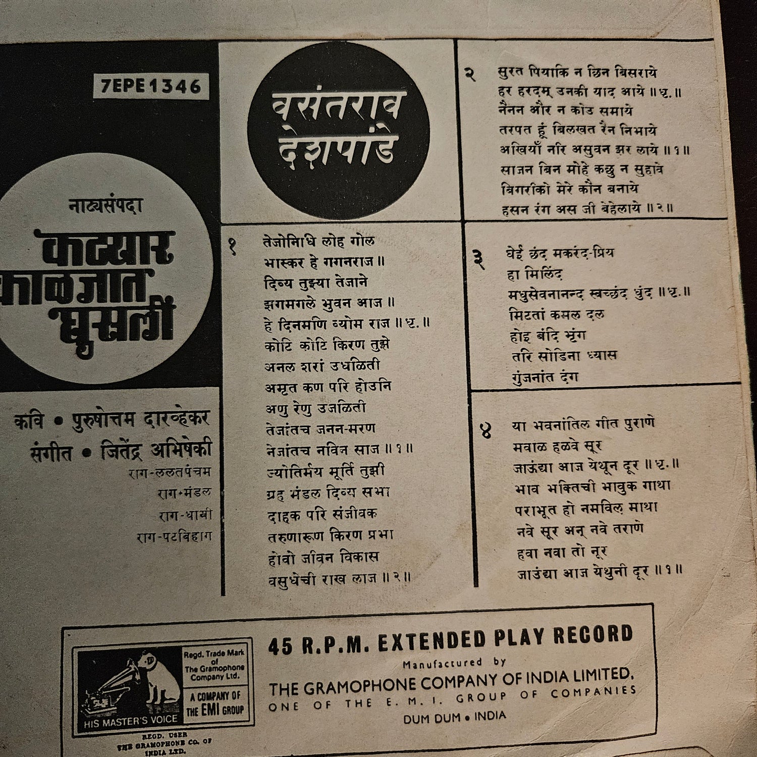 Vasantrao Deshpande Classical 2 EPs Excellent condition see details for tracks